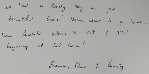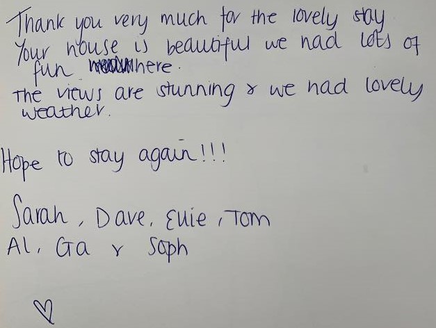 "What a stunning house and stunning place. We've had such a wonderful holiday. Thank you"